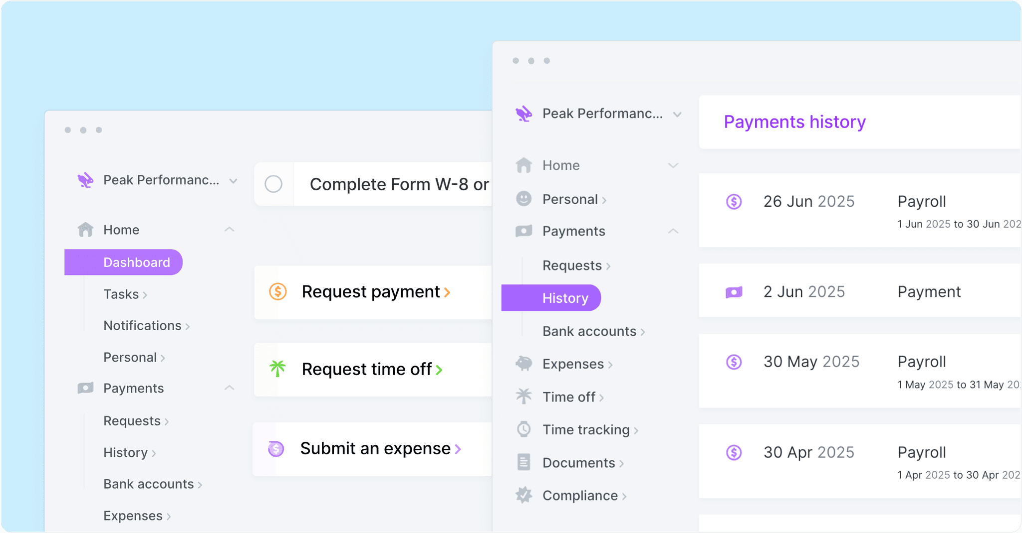 Run payroll for your entire team — contractors and employees, in the US and globally — on one screen. Automated contractor payments, including bonuses, are integrated into your payroll flow.