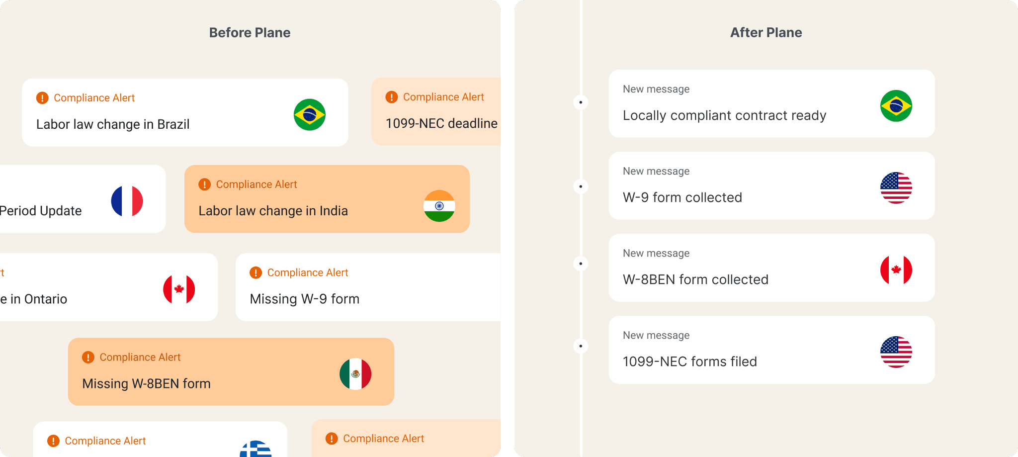 Plane’s team of HR and payroll experts is happy to help you with tricky questions, whether it’s worker classification, tax compliance, or immigration processes